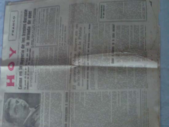 He logrado una ilusión, la de tener un periódico original editado durante la guerra civil, de un bando u otro. En contra uno, FU, qué alegría y aún más, lo conseguí. El periódico que tengo en mi poder es un número emitido el 25 de junio de 1937, en Badajoz capital, sin retaguardia fascista en esas fechas de la contienda, el Hoy, como se titula y como aún hoy en día se sigue llamando, pues sigue publicando en Extremadura.